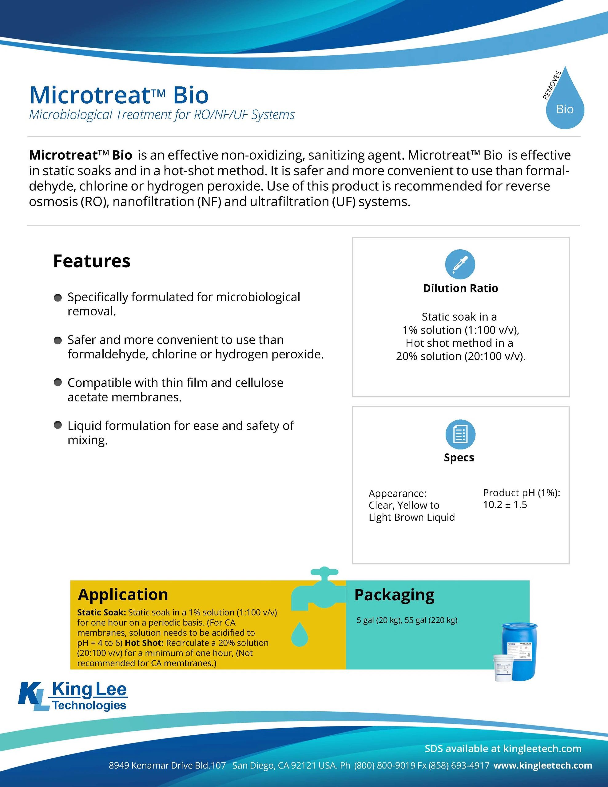 MicrotreatTM Bio is an effective non-oxidizing, sanitizing agent. Microtreat™ Bio is effective in static soaks and in a hot-shot method. It is safer and more convenient to use than formaldehyde,